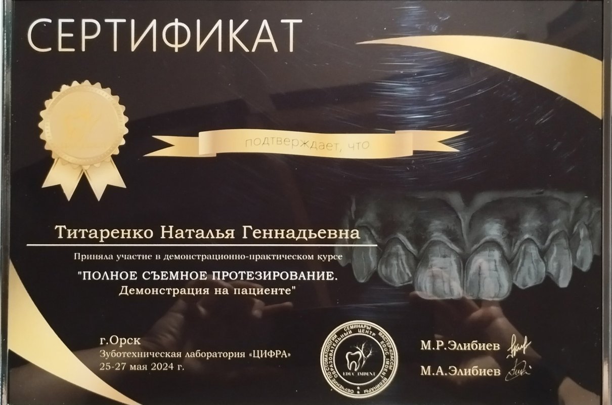 Я делала ремонт моста у врача Титаренко Натальи Геннадьевны - она вежливая, приветливая, всё понятно объясняет, настоящий профессионал. Хожу к ней с 2020 года. Когда потребовалась экстренная помощь - приняли быстро.